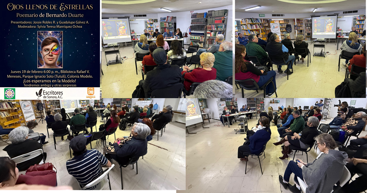 Como mi tiempo y energía son limitados, pues dedico muchos momentos de cada día a leer y a escribir, debo confesar que no pensaba ir a la presentación del libro Ojos llenos de estrellas, pero me gustó tanto la amable invitación que me hizo el autor Bernardo Duarte, que agendé el compromiso y acudí al evento mencionado. No me arrepentí. Fue una excelente presentación, que estuvo a cargo de personalidades con mucha experiencia en este campo, como son, Jossie Robles y Guadalupe Gálvez, con la atinada moderación de Sylvia Manríquez, presidenta de Escritores de Sonora (ESAC).